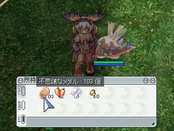 シングルはサイコロで運任せ(ぁ ダブルスは1-5の1点掛け。 コツコツしてきて現在こんな感じ。 目標は1000~1500枚なのでまだまだ先は長いです。 今日からローソンでコカコーラ商品(指定あり)を買うと抽選で何かがあたります。 とりあえず買ってみました。 画像があらくてすみません。 まぁこんなのがついてます。 law.cocacola.co.jp/ まぁあたらないだろうけどね! シリアルコードを1回入力するとアイテム その場でチャレンジが出来る。 8月12日から9月30日のアイテム一覧。 ゴーストリングカード プラチナシールド[0] ヴァルキリーアーマー[1] ヴァルキリーフェザーバンド[1] ヴァルキリーシューズ[1] 魚帽子[0] 小さな鈴のリボン[1] サンタポリン帽[1] ファンタオレンジ缶[1] ファンタグレープ缶[1] ファンタオレンジ ファンタグレープ 古いカード帖 古い紫色の箱 古く青い箱 戦闘教範50(2個)の箱 1DAYチケット(新規・継続用) 新しいものとしてはファンタ缶とファンタかな? ファンタオレンジ缶[1]/ファンタグレープ缶[1] 【系列】兜【位置】上段【Def】2【重量】10【装備職業】全ての職業 ファンタオレンジ・ファンタグレープ HP/SPが一定量回復する。 10pt貯めたらWちゃんす! 錐[1] アリスカード マジェスティックゴート[1] ランニングシャツ[1] PR この記事にコメントする