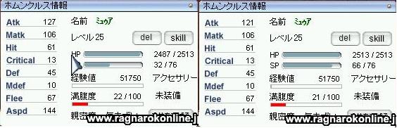 × [PR]上記の広告は3ヶ月以上新規記事投稿のないブログに表示されています。新しい記事を書く事で広告が消えます。 土・日は基本ケミ&ホムペアのLv上げに力をいれてました。 Lvアップ後みくらべるためにSSを。 Atkが99。一度に4ぐらいあがっててよくあがるなぁ~と思ってました。 ホムに支援がかけれるわけでもないのでなんだろう・・。とサポートセンターへ連絡。 ぁぁそう不具合扱いになるんですね。